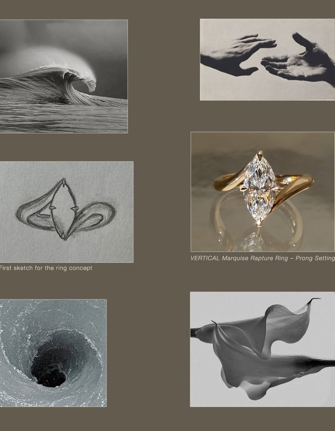 Featuring a brilliant marquise-cut zircon as the centerpiece, embraced by fluid, sculpted bands that wrap gracefully around the stone. The design is accented with delicate pavé-set zircons, adding a refined sparkle that enhances its luxurious appeal.