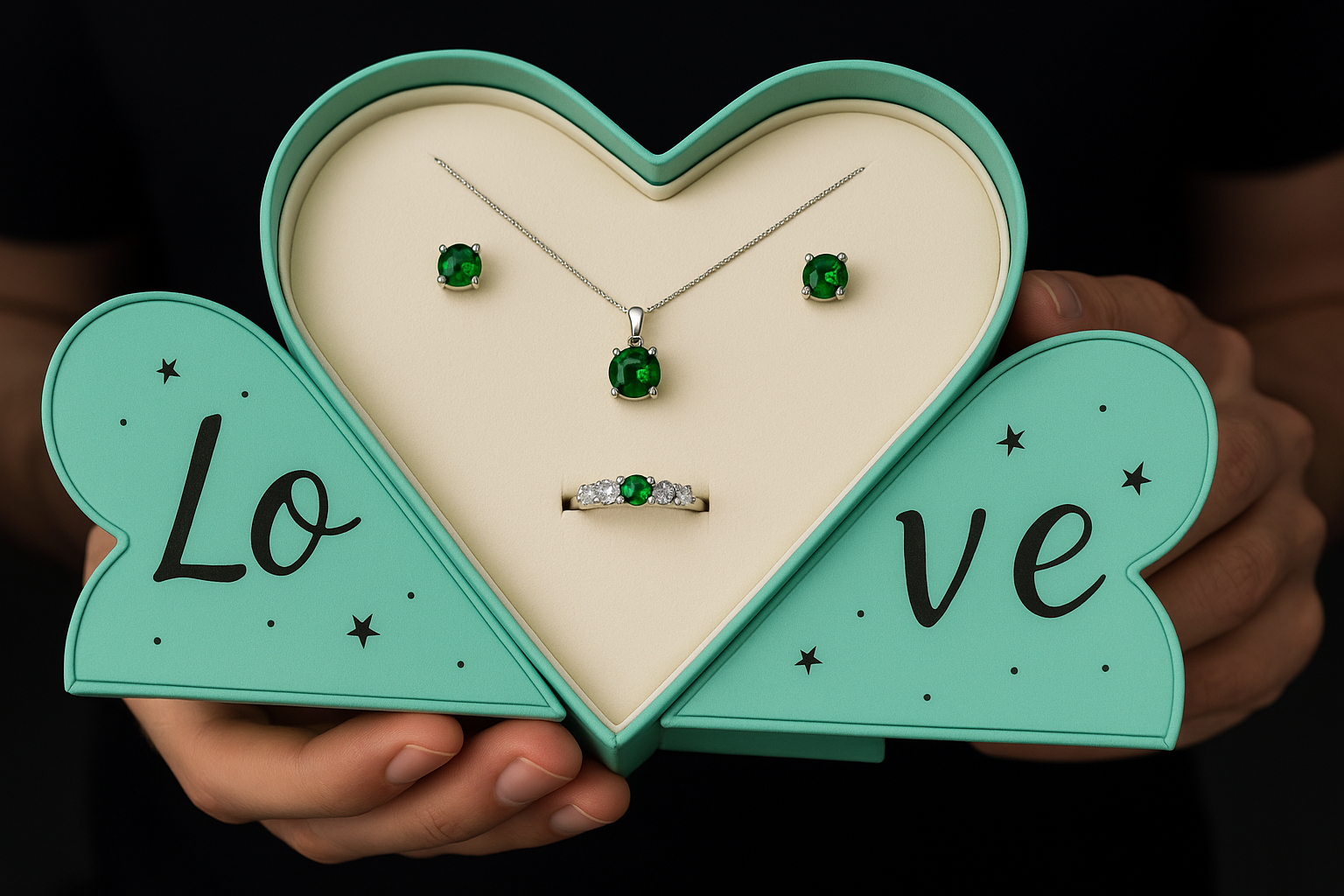 This heart-shaped box holds a timeless 4-piece set designed to turn heads: