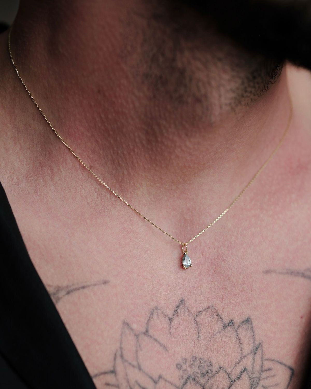 A timeless minimalist necklace featuring a teardrop-cut zircon stone that captures the light beautifully. Crafted from 925 sterling silver plated with 18k gold, this elegant piece combines subtle luxury with everyday wearability.
