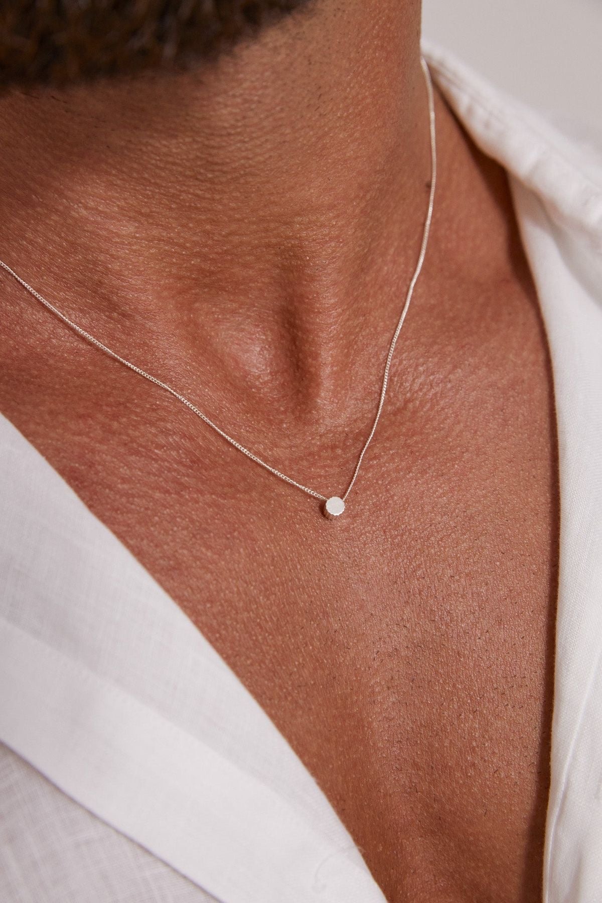 Crafted from Sterling Silver 925, this necklace features a sleek round pendant that reflects simplicity and confidence.